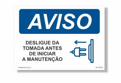 Placa Aviso - DESLIGUE DA TOMADA, ANTES DE INICIAR A MANUTENÇÃO