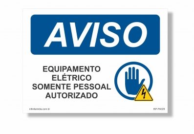 Placa Aviso - EQUIPAMENTO ELÉTRICO, SOMENTE PESSOAL AUTORIZADO