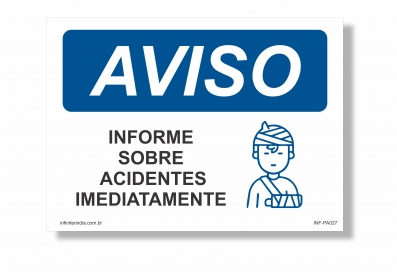 Placa Aviso - INFORME SOBRE ACIDENTES IMEDIATAMENTE