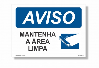 Placa Aviso - MANTENHA A ÁREA LIMPA