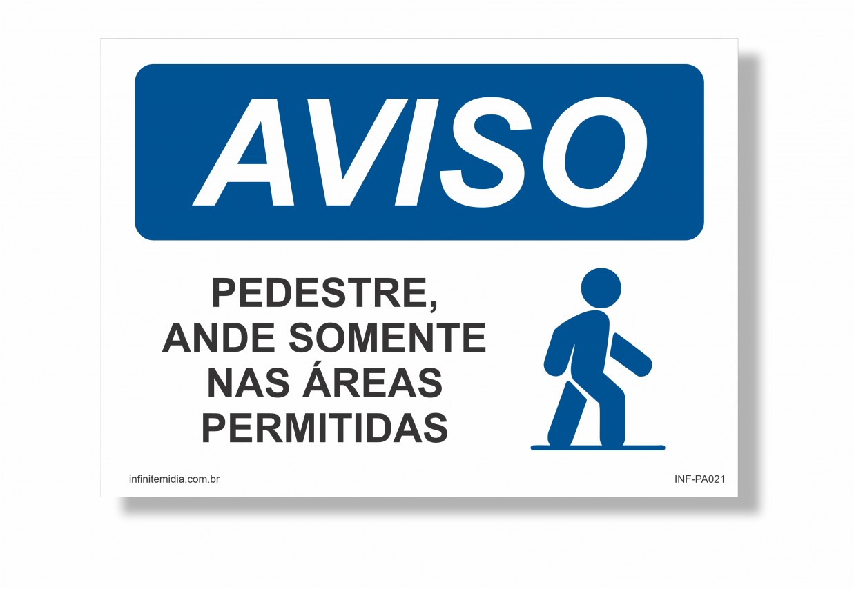 Placa Aviso - PEDESTRE, ANDE SOMENTE NAS ÁREAS PERMITIDAS