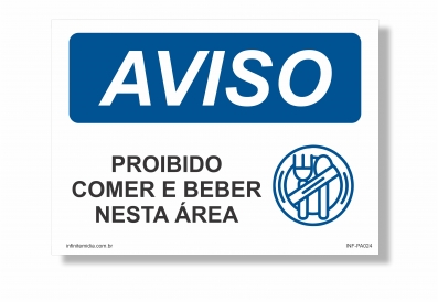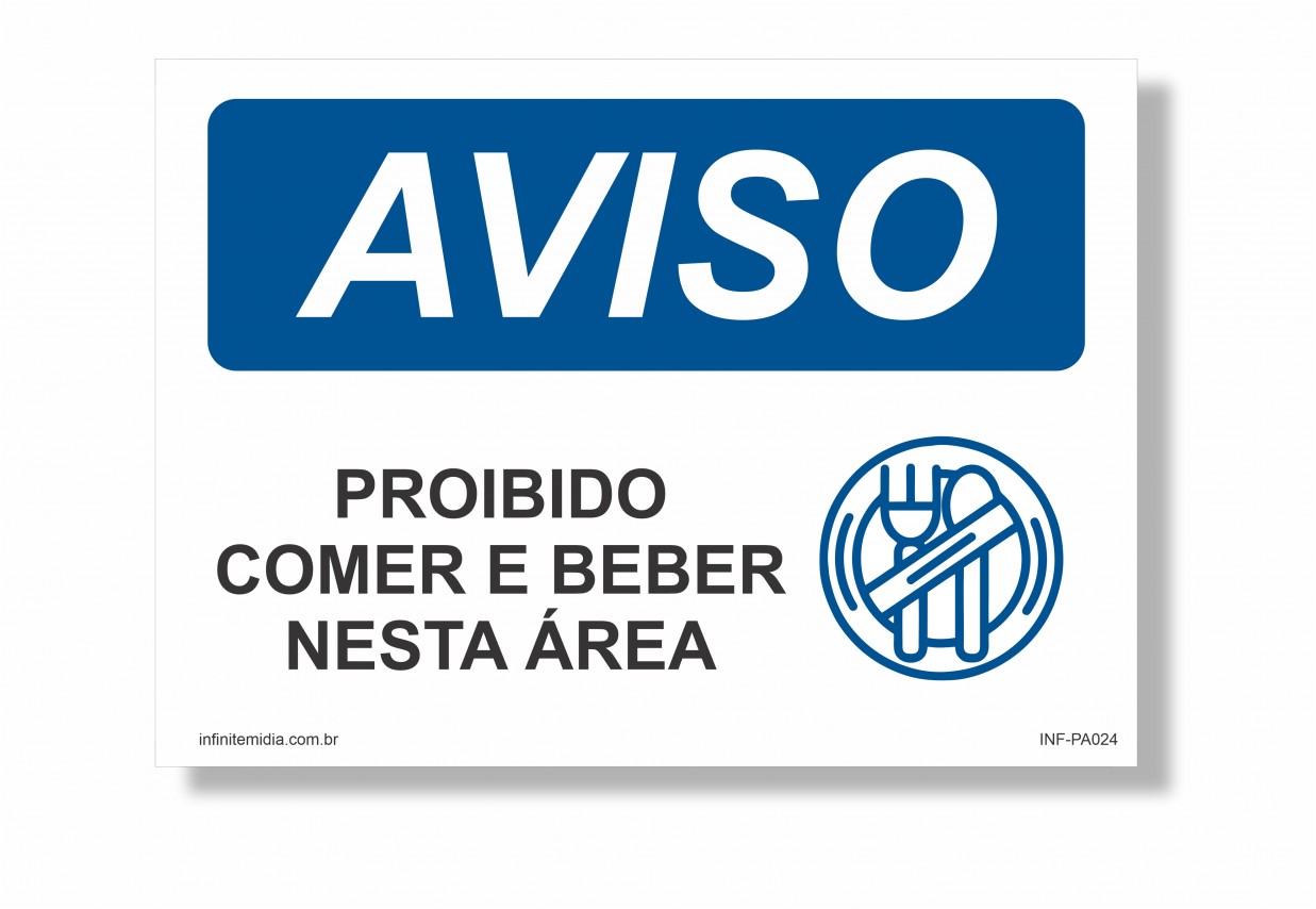 Placa Aviso - PROIBIDO COMER E BEBER NESTA ÁREA