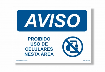 Placa Aviso - PROIBIDO USO DE CELULARES NESTA ÁREA