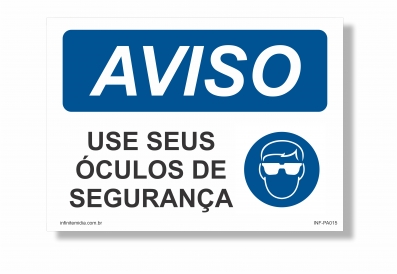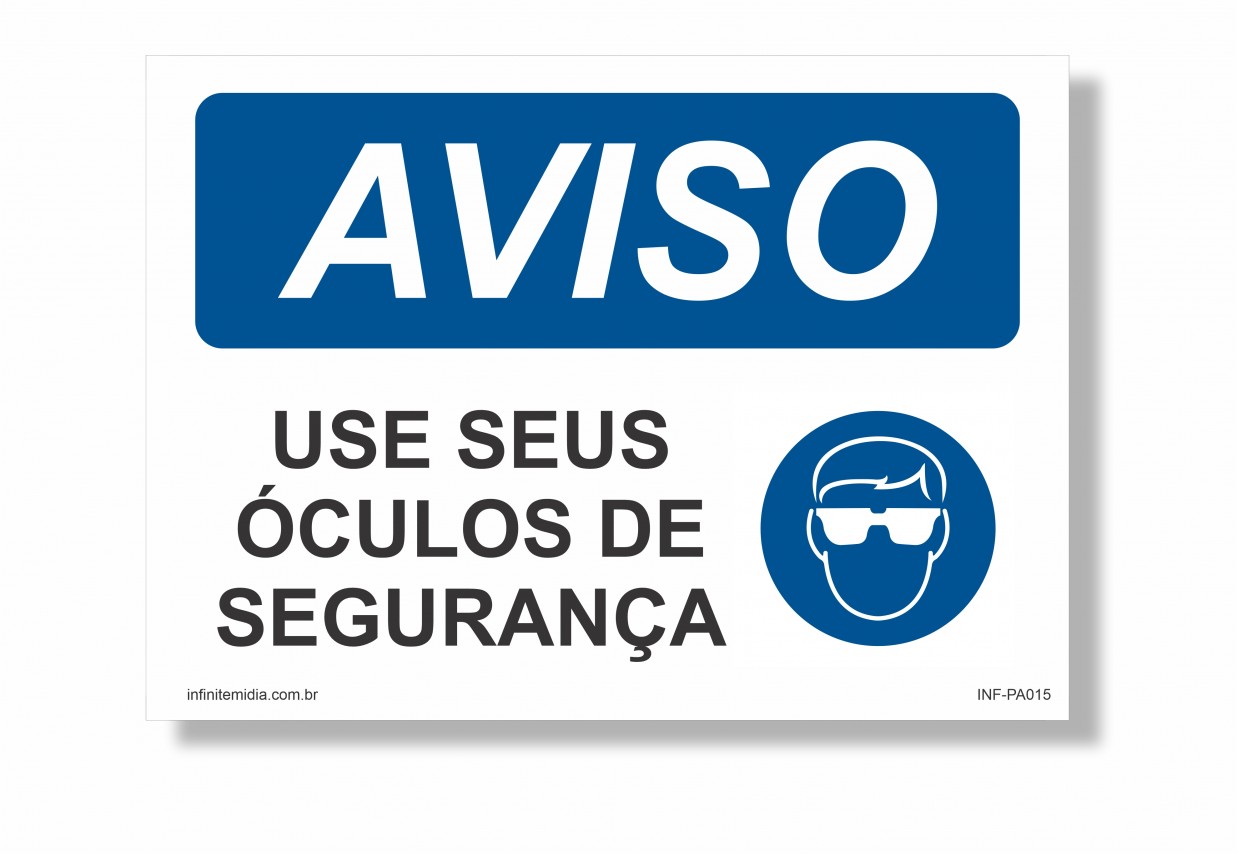 Placa Aviso -USE SEUS ÓCULOS DE SEGURANÇA